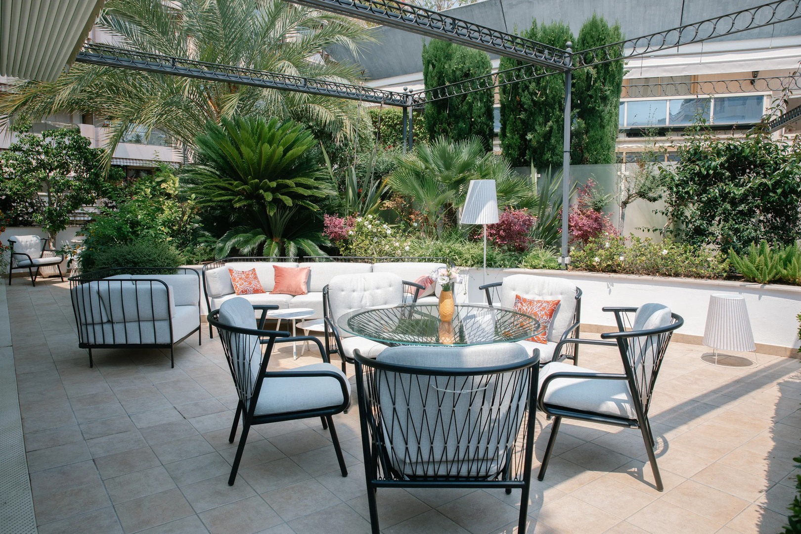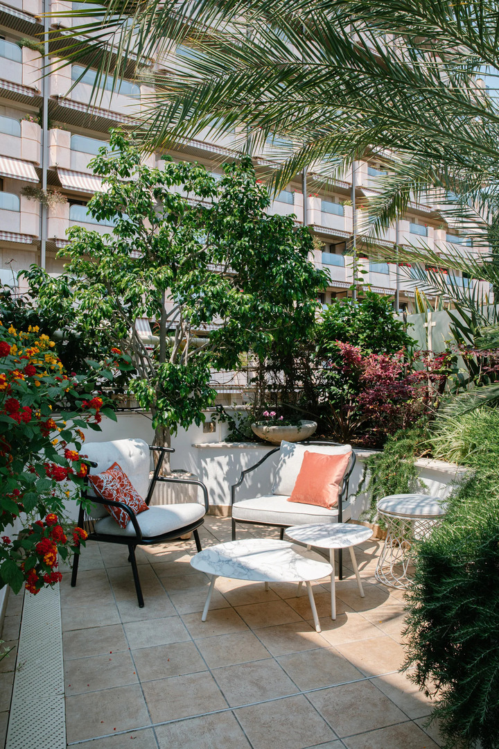 In a luxury residence located in the Larousse-Saint Roman district, we offer for rent a beautiful 5-room apartment consisting of: an entrance hall, a guest toilet, a laundry room, a double living room with a dining area all giving access to a loggia of about 8m² and a large terrace of about 50m² surrounded by its pretty garden of about 32m², a master bedroom with marble bathroom and adjoining dressing room, 2 bedrooms, a large separate fully equipped kitchen.
